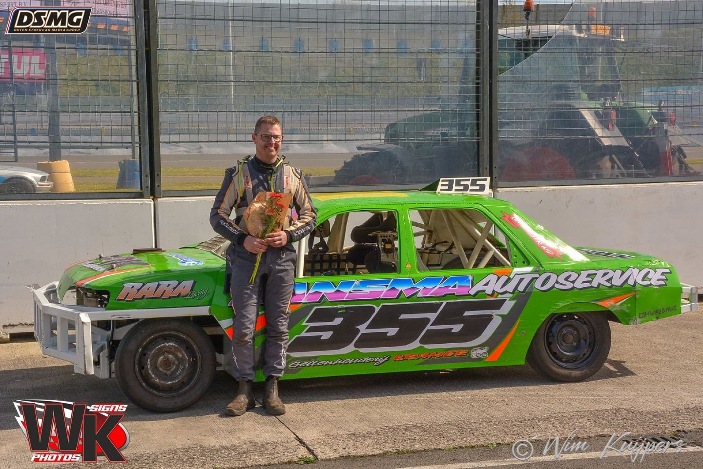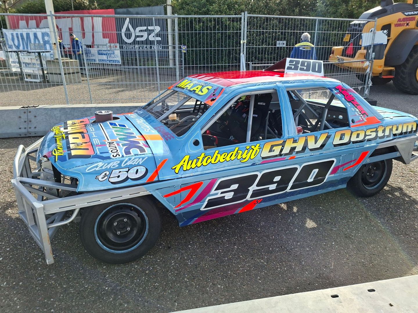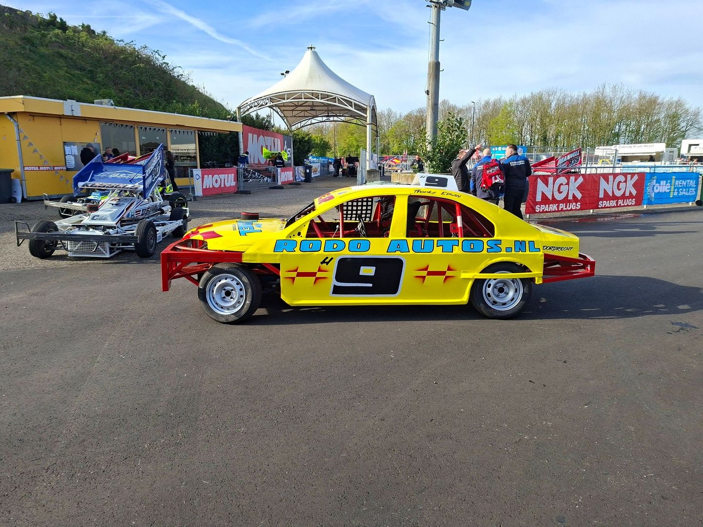 On Monday april 6 the season opener for the DSCDA Saloon Stockcars took place at the Venray oval. 18 drivers where booked for the meeting that contained a whites & yellows race, two heats a final and an allcomers race. The drivers made good use of the time during the off season and some very nicely turned out cars took to the track. This included brand new cars for #153 Nick Antwerpen and #390 Maikel Maas. New to the formula #9 Raymond Soer ran into brake problems during practice and retired from the meeting after the problems hit him again in the whites & yellows race.