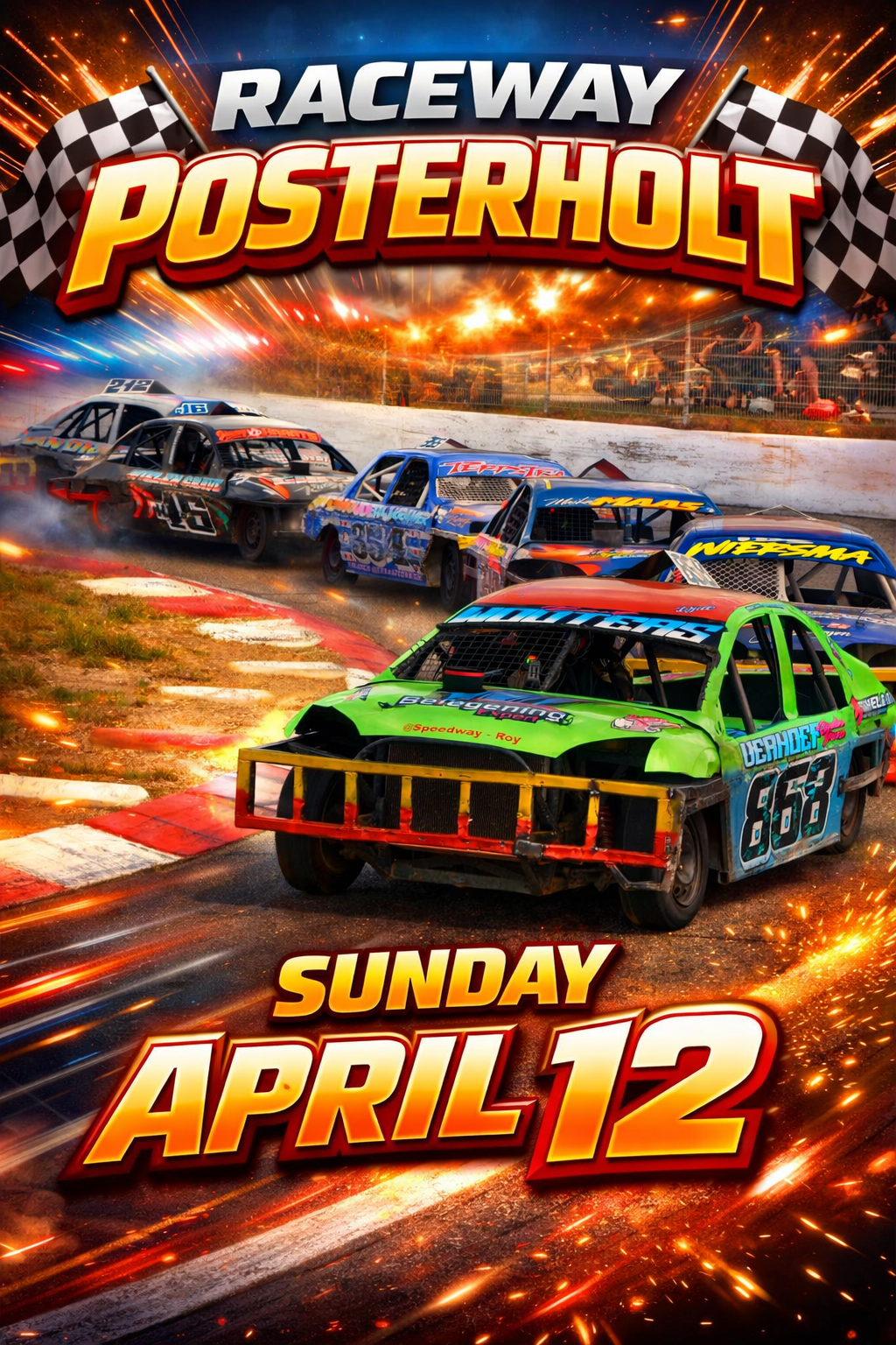 In ons eigen Nederland wordt de tweede wedstrijd van het jaar verreden en wel op Raceway Posterholt. 13 coureurs hebben zich tot nu toe aangemeld. We missen in #189 Svan Slebioda en #888 Johnny Stam jr twee vaste rijders voor Posterholt. Zij zullen er in mei weer bij zijn. Voor de rest staat de gehele top van de DSCDA Saloon Stockcars weer aan de start. #355 Jitse Terpstra, die in Venray vijf races won, waarvan vier die meetellen voor de National points is door een nieuwe regel gepromoveerd naar de blue grade.